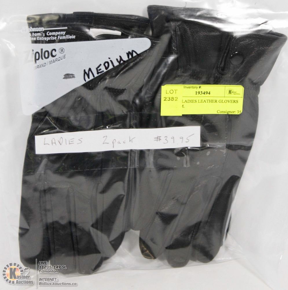 2 PACK LADIES LEATHER GLOVERS MEDIUM.