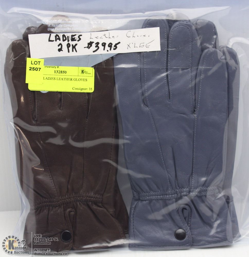 2 PACK LADIES LEATHER GLOVES SIZE EXTRA LARGE