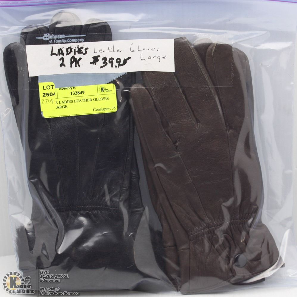 2 PACK LADIES LEATHER GLOVES SIZE LARGE