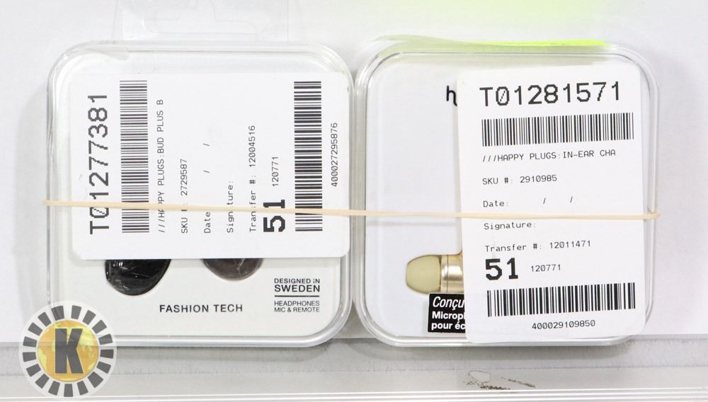 2 PACK OF HAPPY PLUGS HEAD PHONES WIRED