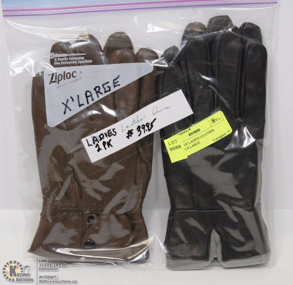 2 PACK OF LADIES LEATHER GLOVES X-LARGE
