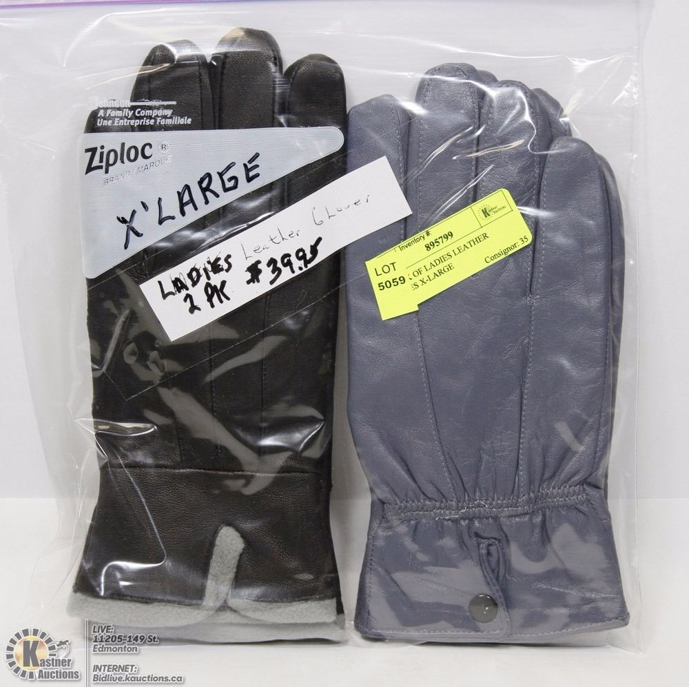 2 PACK OF LADIES LEATHER GLOVES X-LARGE