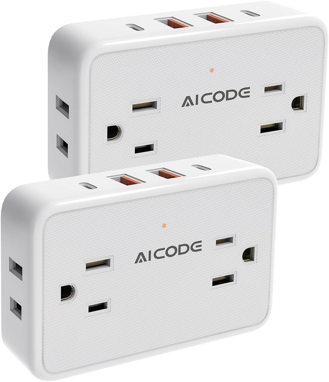 2 PACK OUTLET EXTENDER WITH USB C, AICODE MINI MULTI PLUG OUTLET WITH 4 AC OUTLET AND 4 USB PORTS(2 USB C& 2 USB A), WALL PLUG EXPANDER FOR TRAVEL,HOME, OFFICE, DORM