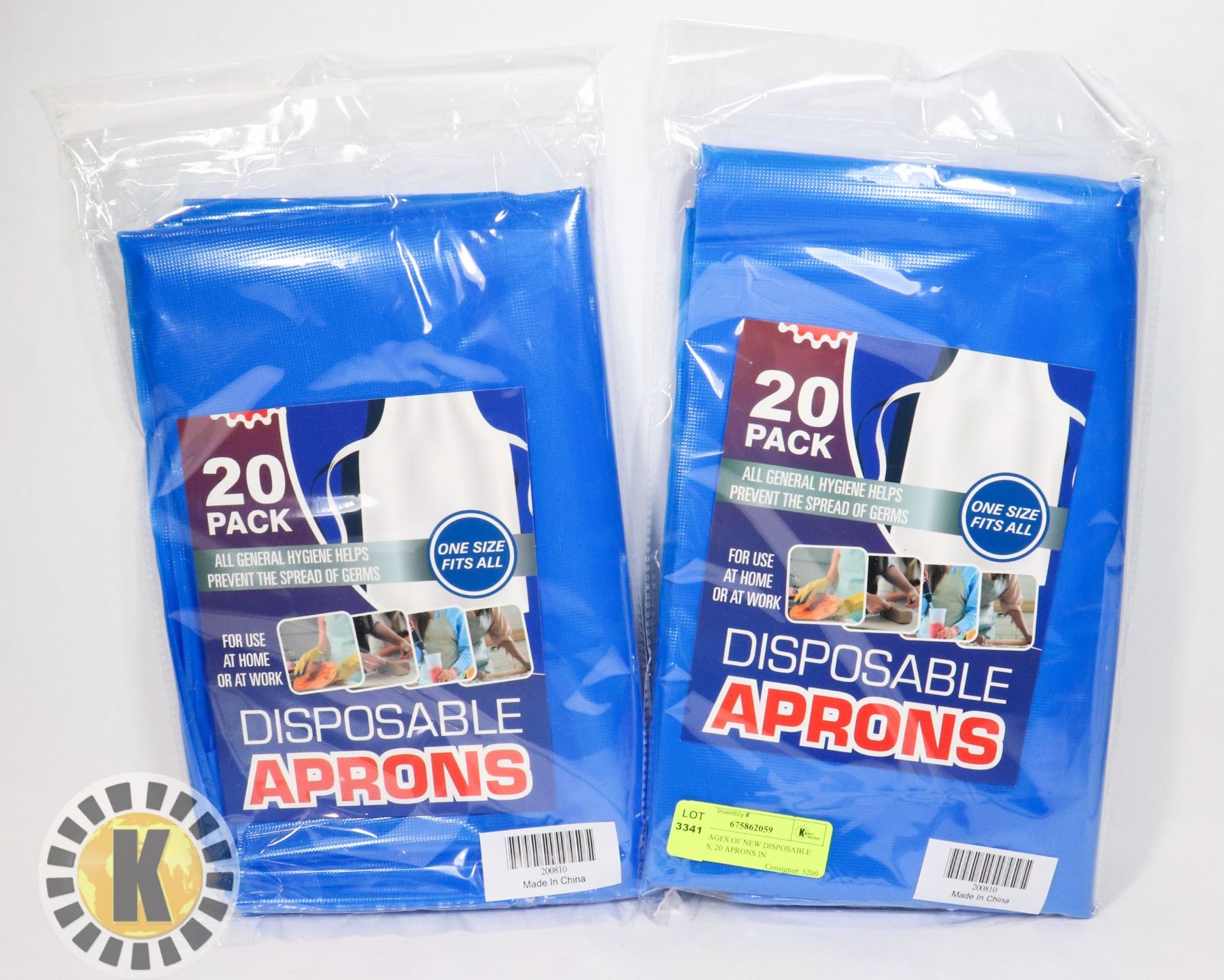 PACKAGING DAMAGED PRODUCT NEW. EACH PACKAGE CONTAINS 20 APRONS