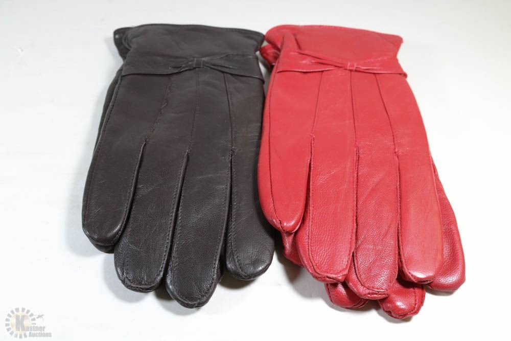 2 PAIRS OF LADIES LEATHER GLOVES SIZE LARGE