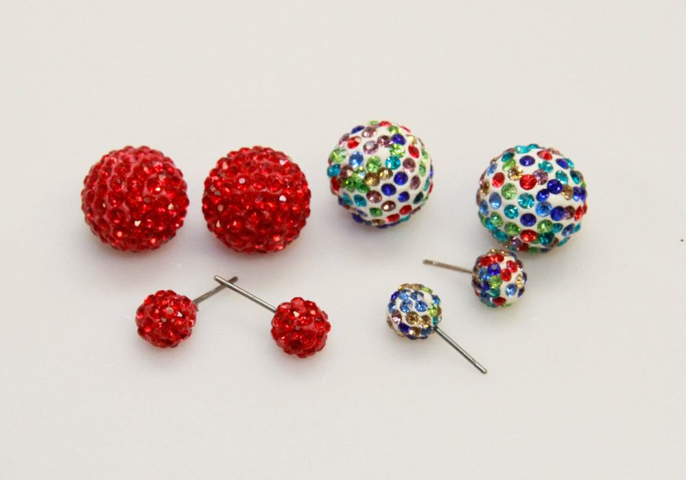 2 PAIRS OF NEW  DOUBLE THE FUN  SPARKLE BALLS STUD