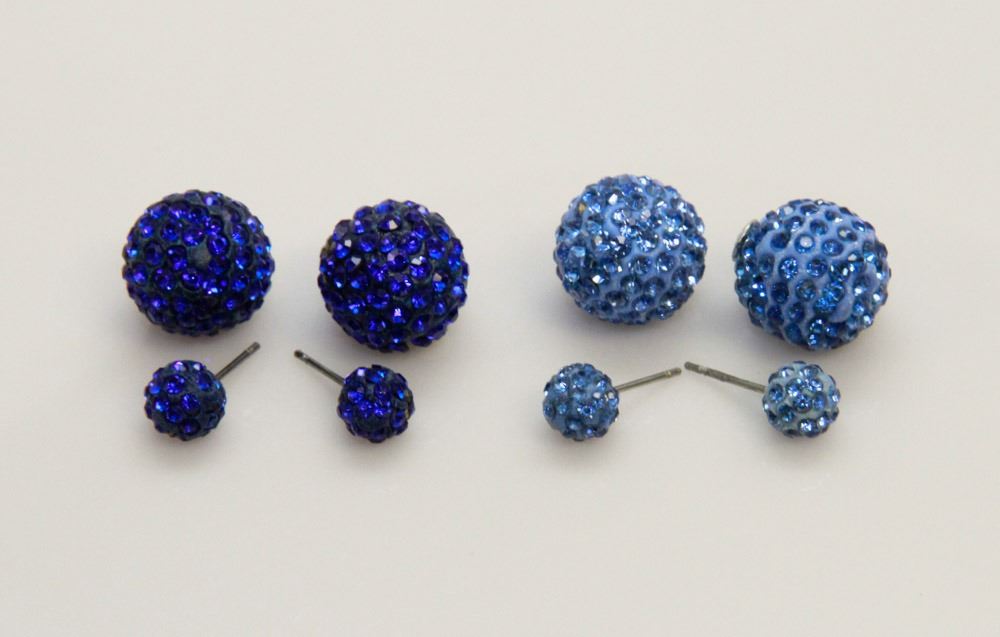 2 PAIRS OF NEW  DOUBLE THE FUN  SPARKLE BALLS STUD