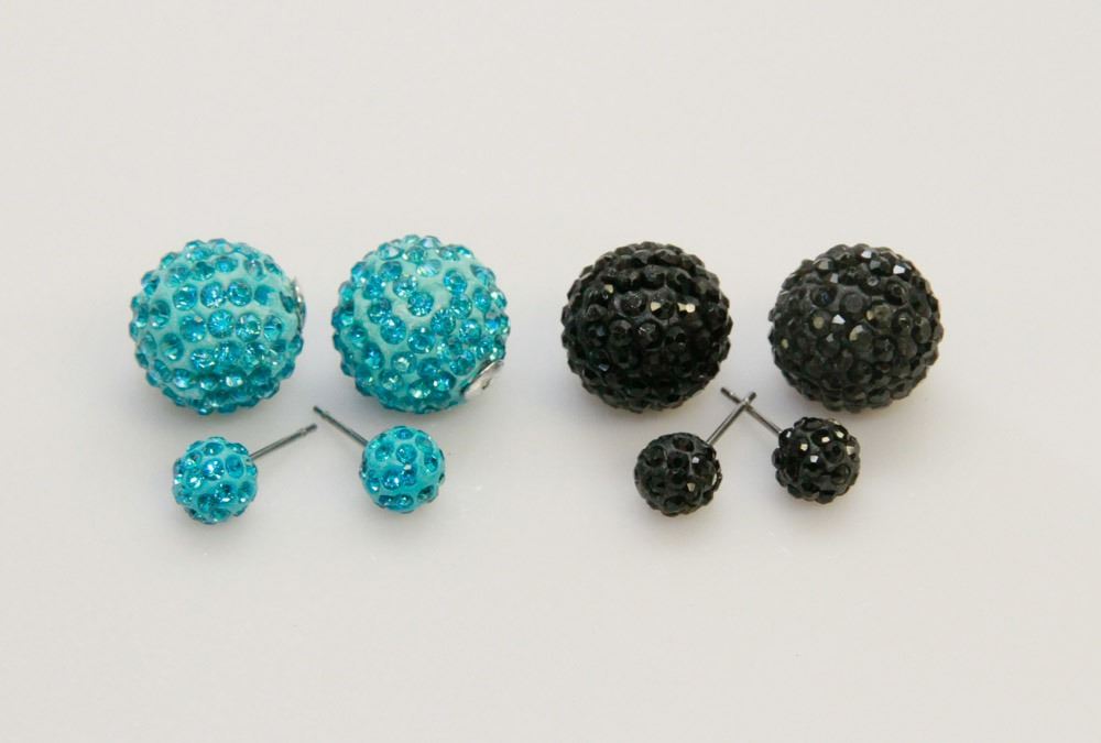 2 PAIRS OF NEW "DOUBLE THE FUN" SPARKLE BALLS STUD