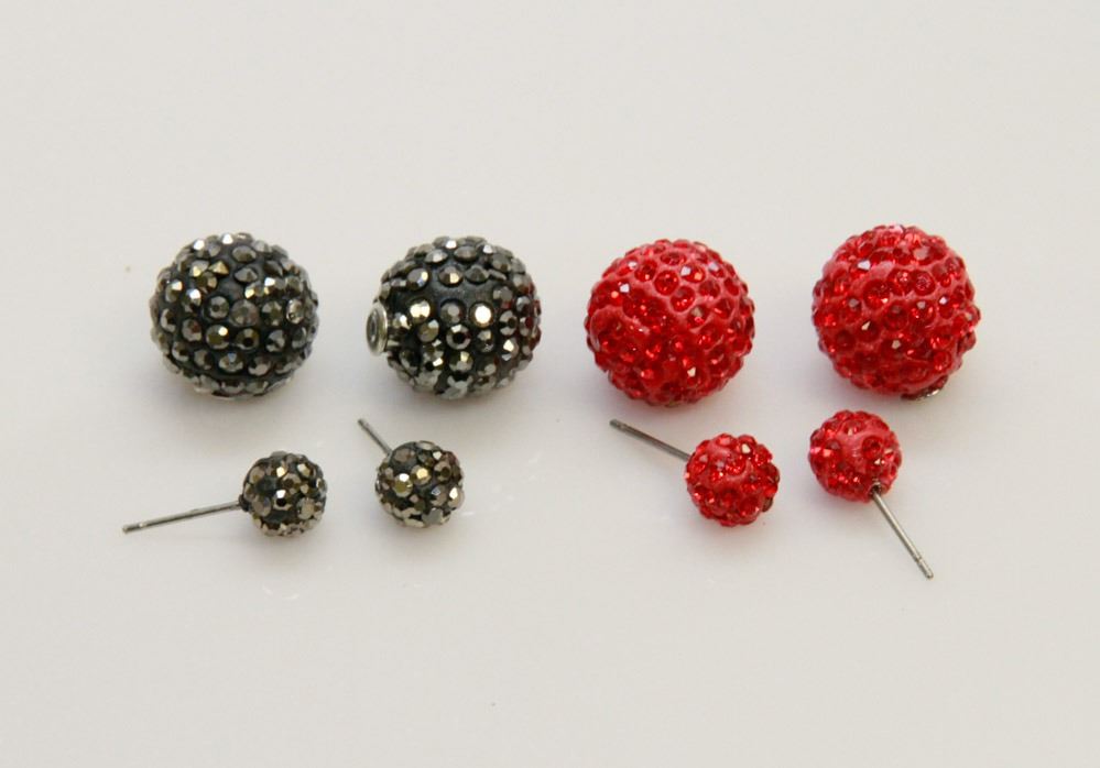 2 PAIRS OF NEW  DOUBLE THE FUN  SPARKLE BALLS STUD