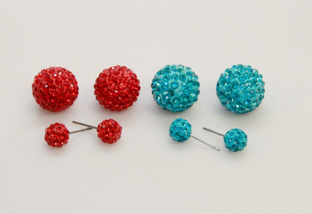 2 PAIRS OF NEW "DOUBLE THE FUN" SPARKLE BALLS STUD