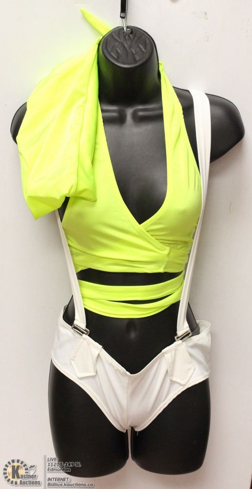 2 PC WHITE SUSPENDERS & GREEN HOODIE TOP SZ SM/MED