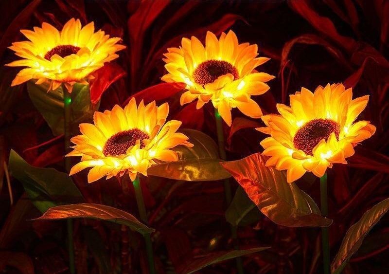 2 PCS SOLAR THREE-HEAD SUNFLOWER OUTDOOR LIGHT