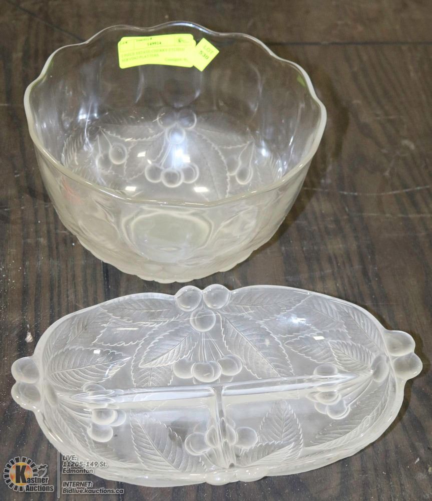 2 PIECE ESTATE CHERRY ETCHED SERVING PLATTERS