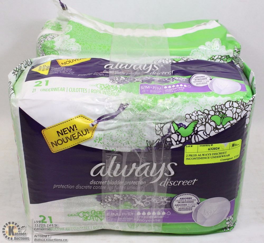 2 PKGS ALWAYS DISCREET INCONTINENCE UNDERWEAR