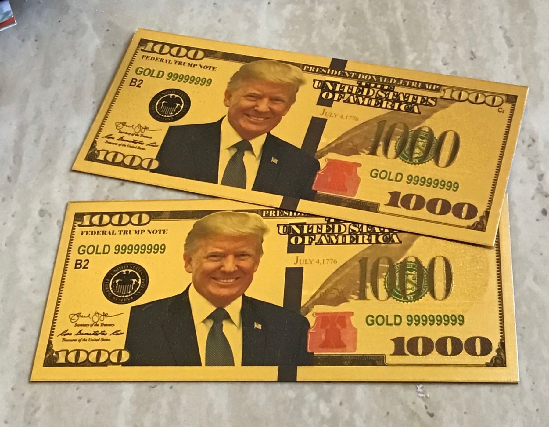 2 REPLICA TRUMP GOLD FOIL BILLS