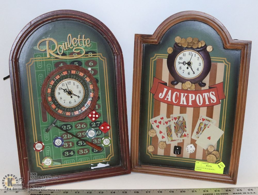 2 ROULETTE BLACKJACK WALL CLOCKS