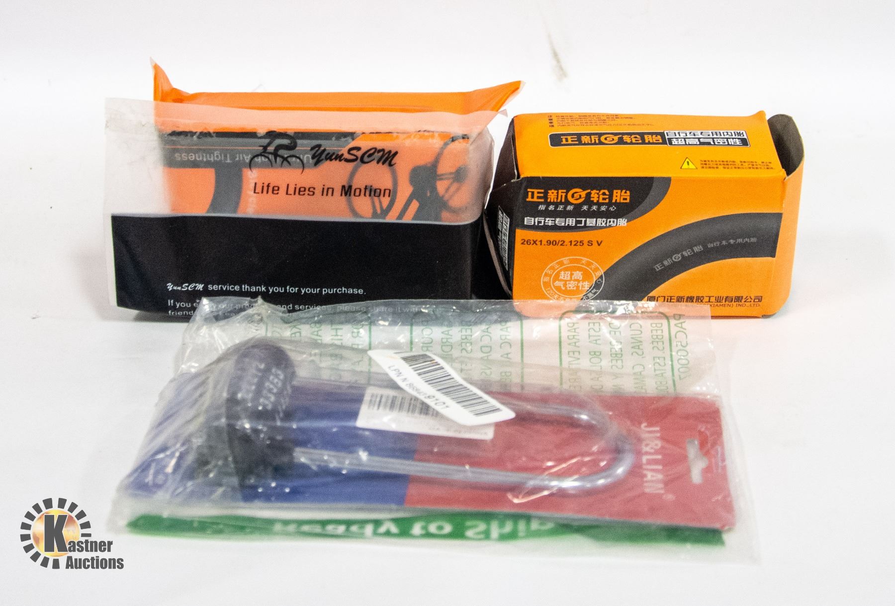 6" BIKE LOCK 5 DIGIT, INNER TUBES 26x1.90/2.125 S V **ALL ITEMS MUST BE REMOVED BY 5PM SATURDAY, DECEMBER 9TH 2023. ALL REMAINING ITEMS WILL BE SUBJECT TO A $6.00 PER DAY STORAGE CHARGE. ANY ITEMS REMAINING AFTER THURSDAY, DECEMBER 21ST 2023 WILL BE CONSIDERED FORFEITED. NO REFUNDS WILL BE ISSUED FOR FORFEITED ITEMS. TO SCHEDULE A PICK UP APPOINTMENT CLICK HERE
