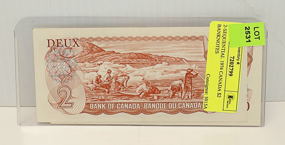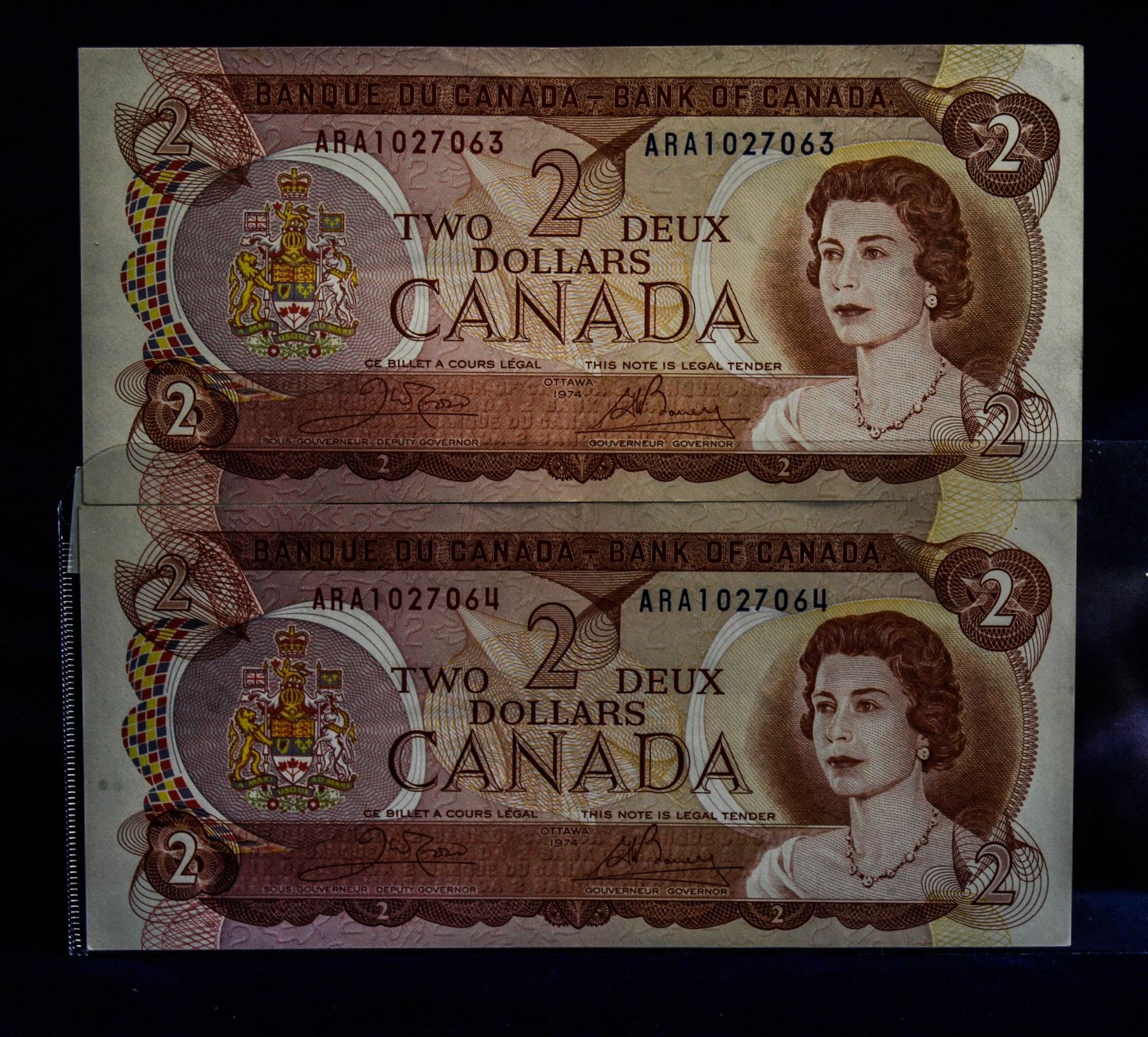 2-SEQUENTIAL 1974 CANADA $2 BANKNOTES