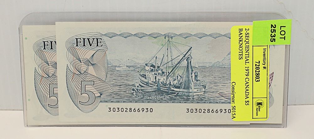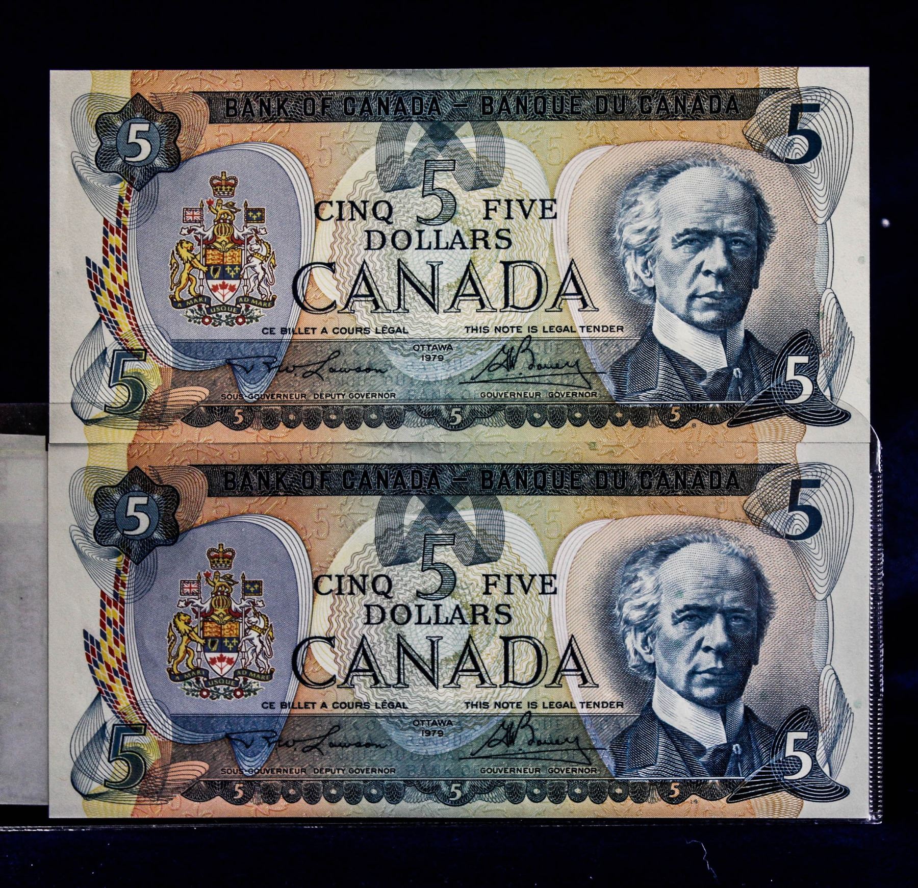 2-SEQUENTIAL 1979 CANADA $5 BANKNOTES