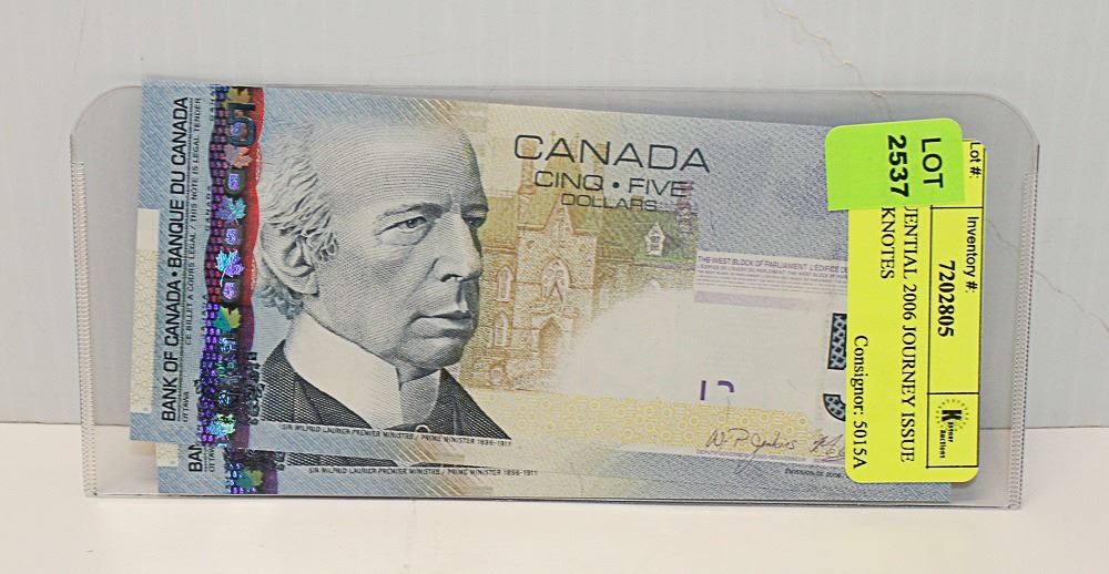 2- SEQUENTIAL 2006 JOURNEY ISSUE $5 BANKNOTES