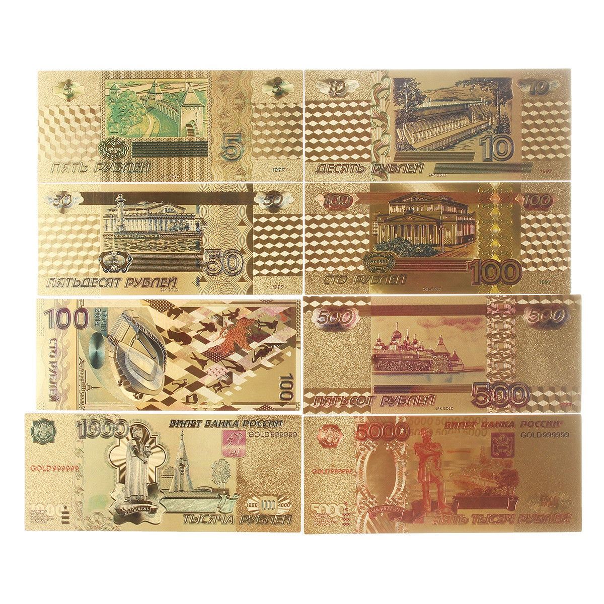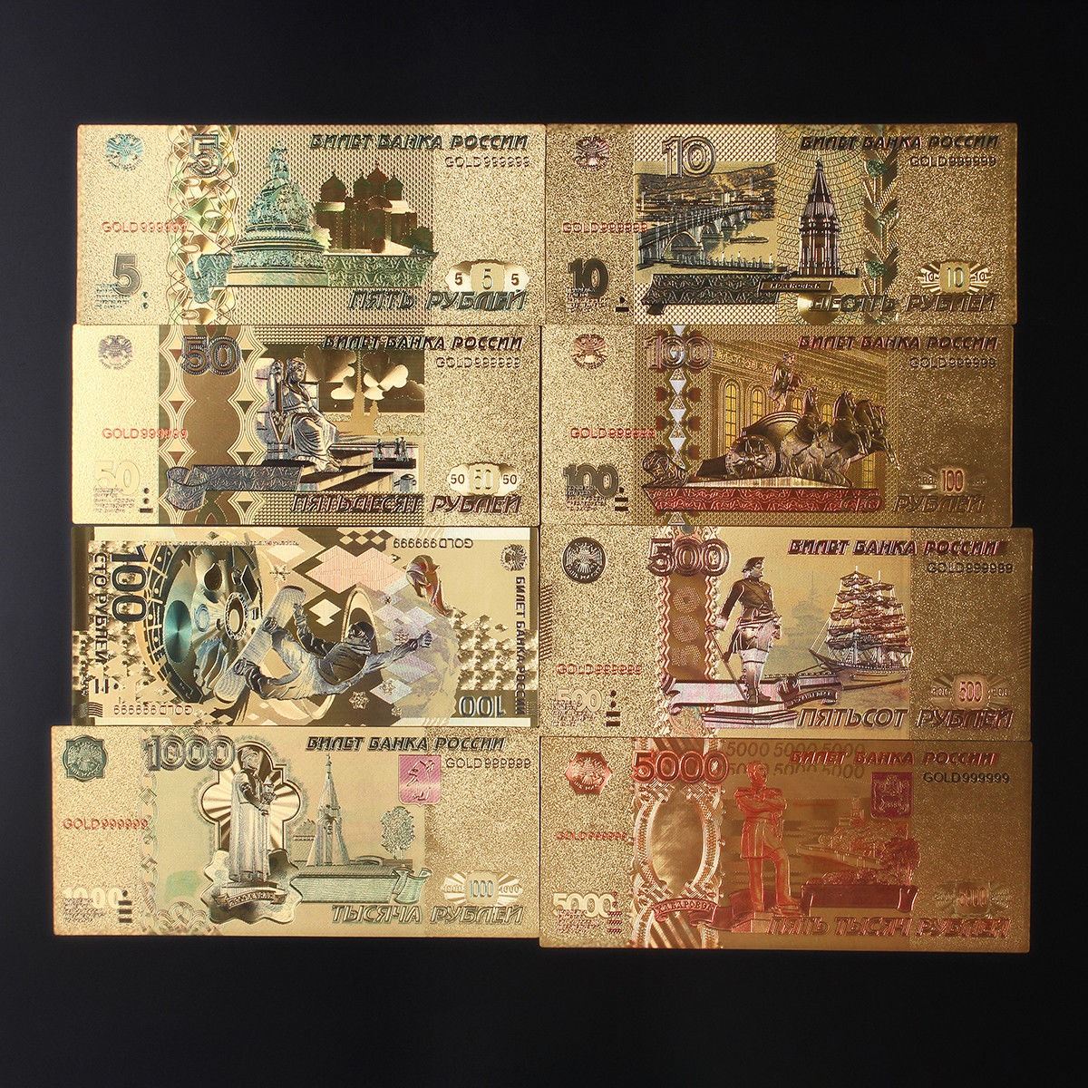 BANKNOTES, COMPLETE SET INCLUDES 5, 10, 20, 50, 100, 500, 1000 & 5000 RUBLES, NOT LEGAL TENDER. COLLECTIBLES