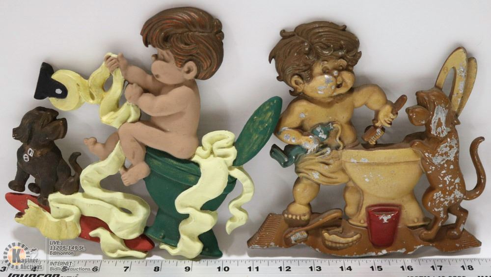 2 SEXTON VINTAGE TIN WALL BATHROOM HANGING