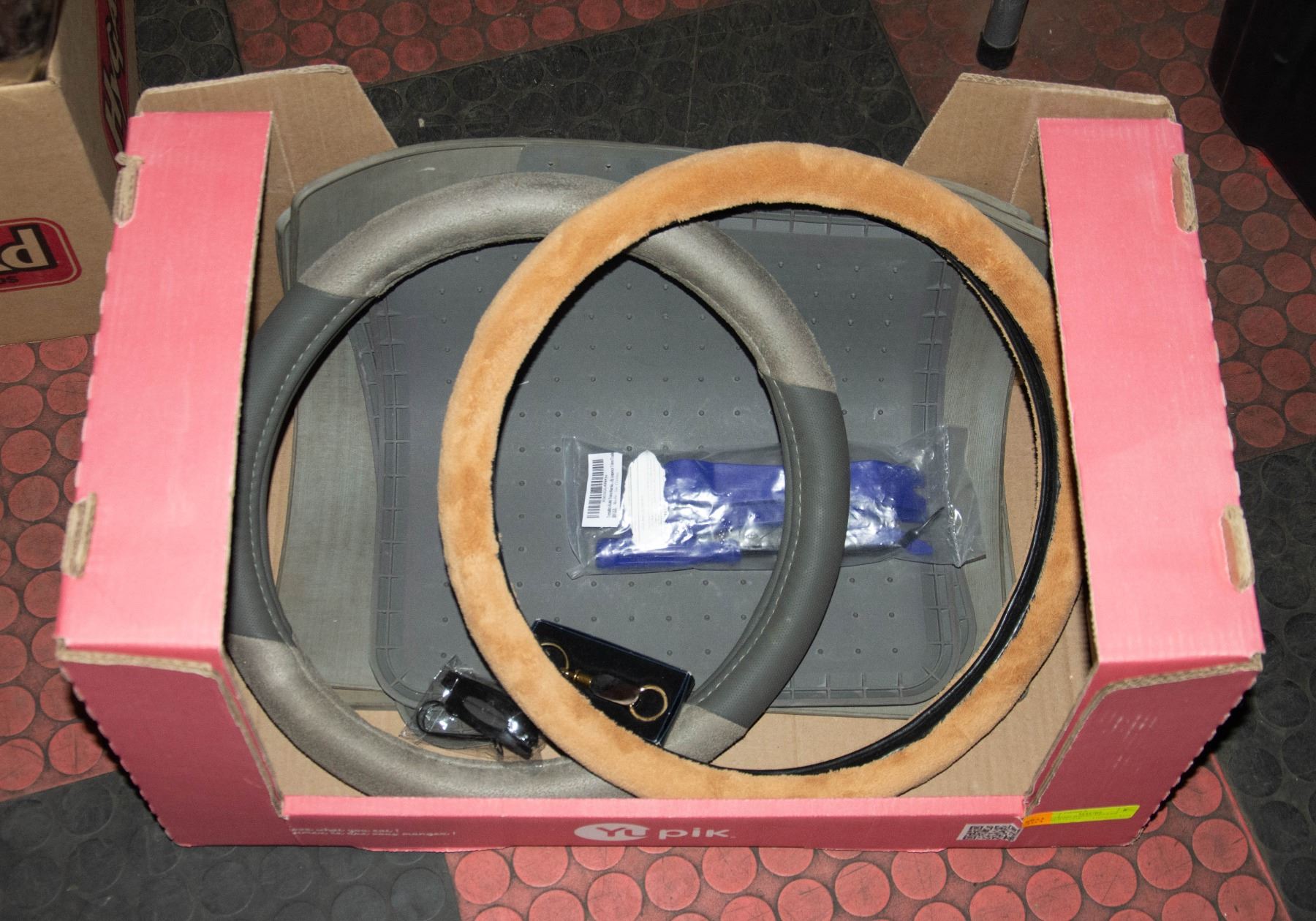 2 STEERING WHEEL COVERS, RUBBER FLOOR