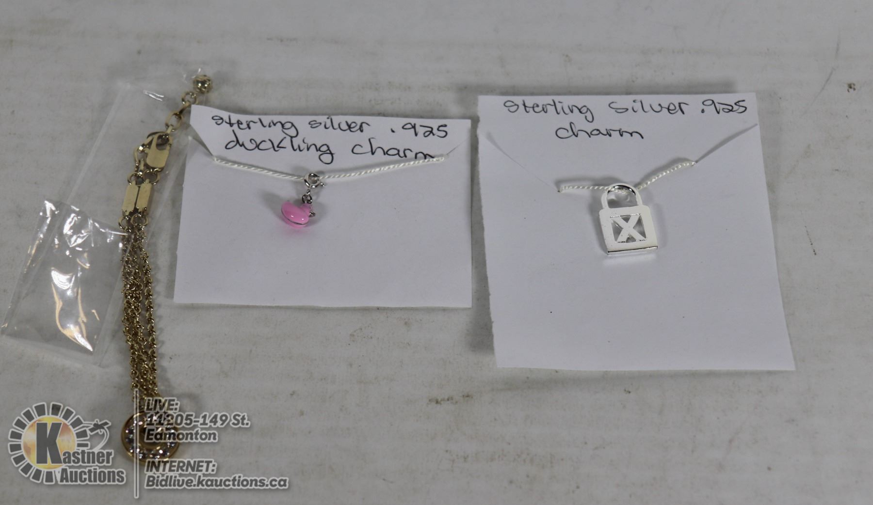 2 STERLING SILVER .925 CHARMS, GOLD FILL BRACELET