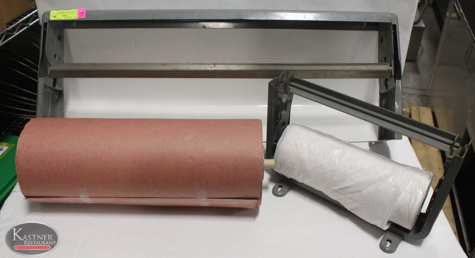 2 TABLE MOUNT PAPER ROLL HOLDERS W/ CUTTERS, 18"