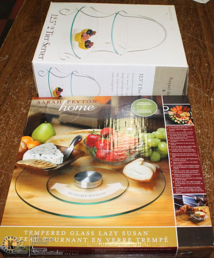 2 TIER CAKE STAND & LAZY SUSAN DISH (NEW IN BOX)