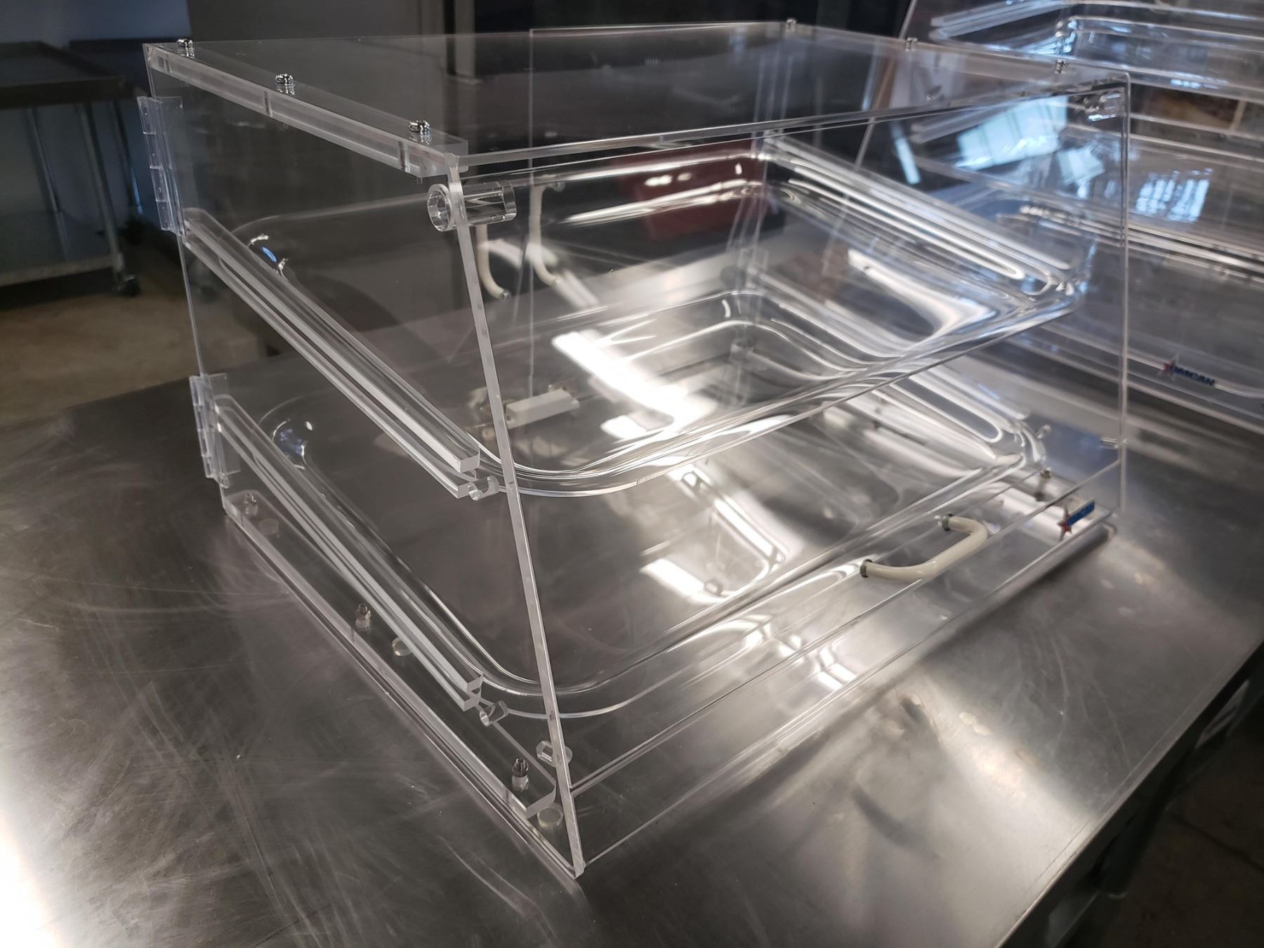 NEW - 2 TRAY ACRYLIC DISPLAY CASE 20.75" X 15.63" X 12", OMCAN 80567