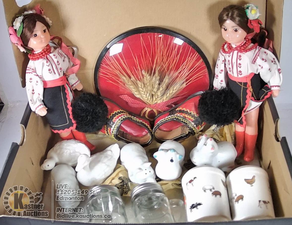 AND CHILDS LEATHER SHOES AND COLLECTIBLE SALT AND PEPPER SHAKERS.