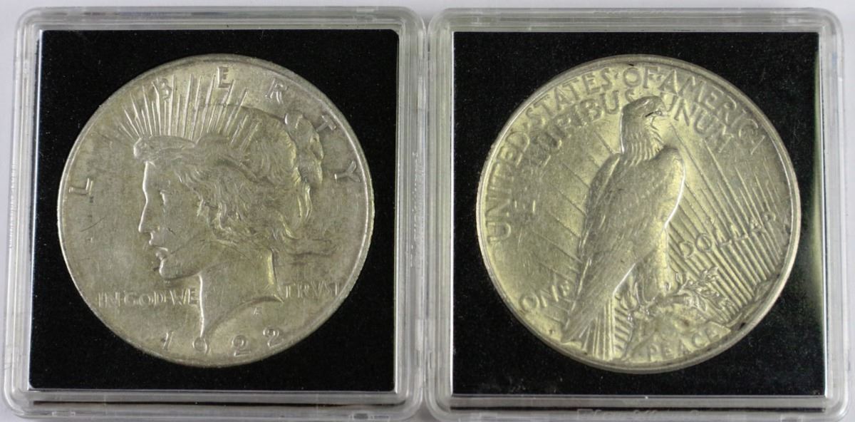 2 US SILVER PEACE DOLLARS 1922 &1923