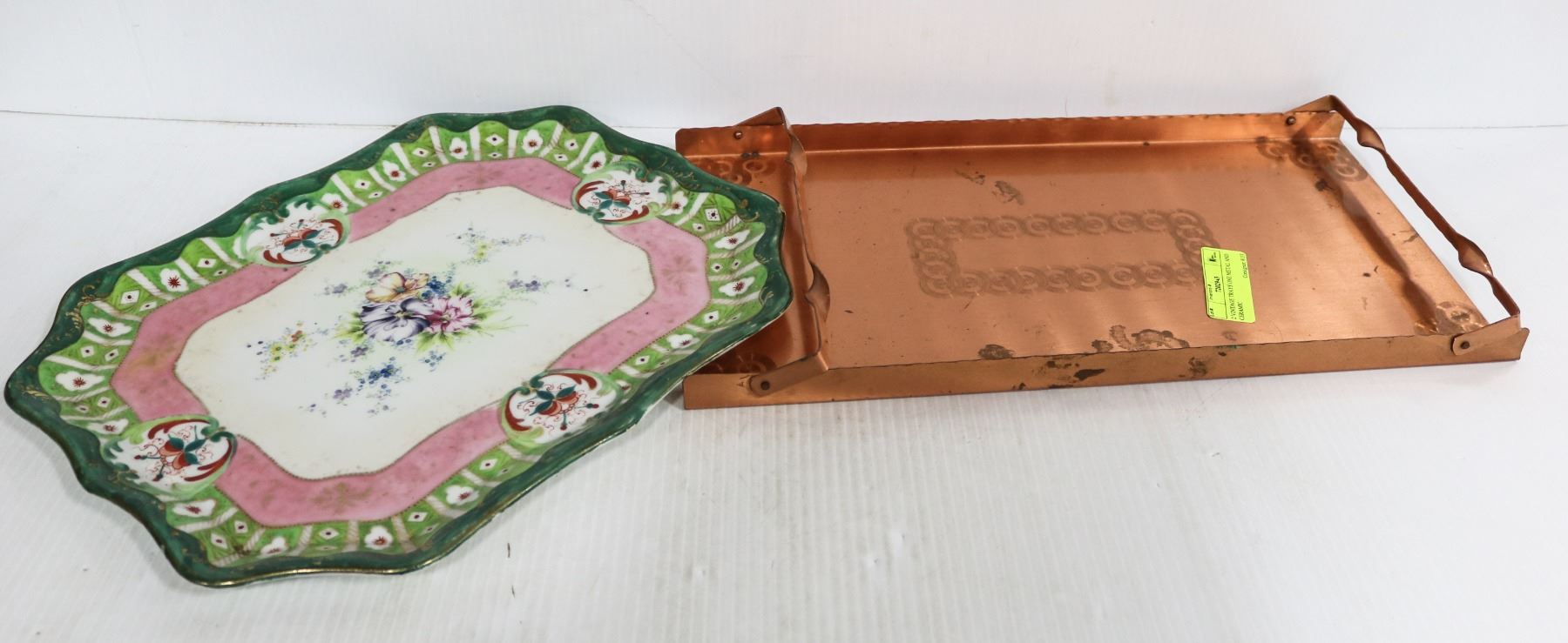 2 VINTAGE TRAYS ONE METAL AND CERAMIC