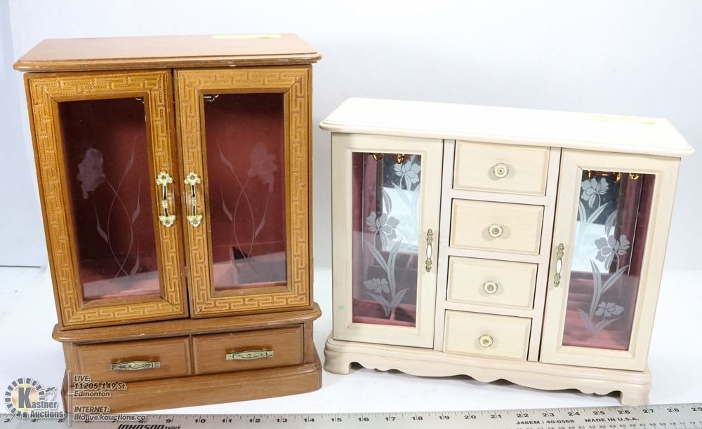 2 WOOD JEWELLERY BOXES 13" AND 10" TALL