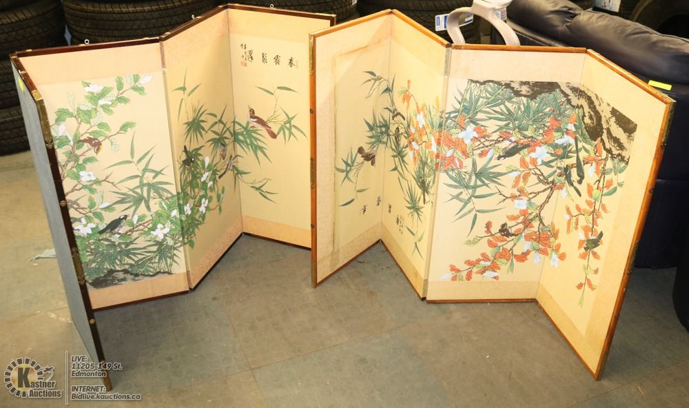 2 WOOD SCREENS 35" HIGH EACH, BIRD & FLOWER DESIGN