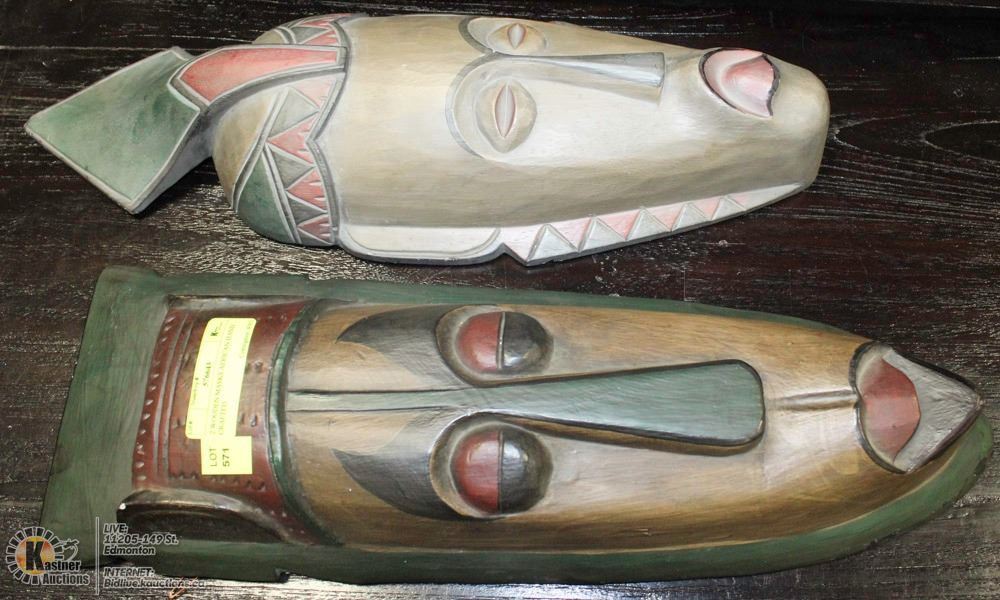 2 WOODEN MASKS AFRICAN HAND CRAFTED
