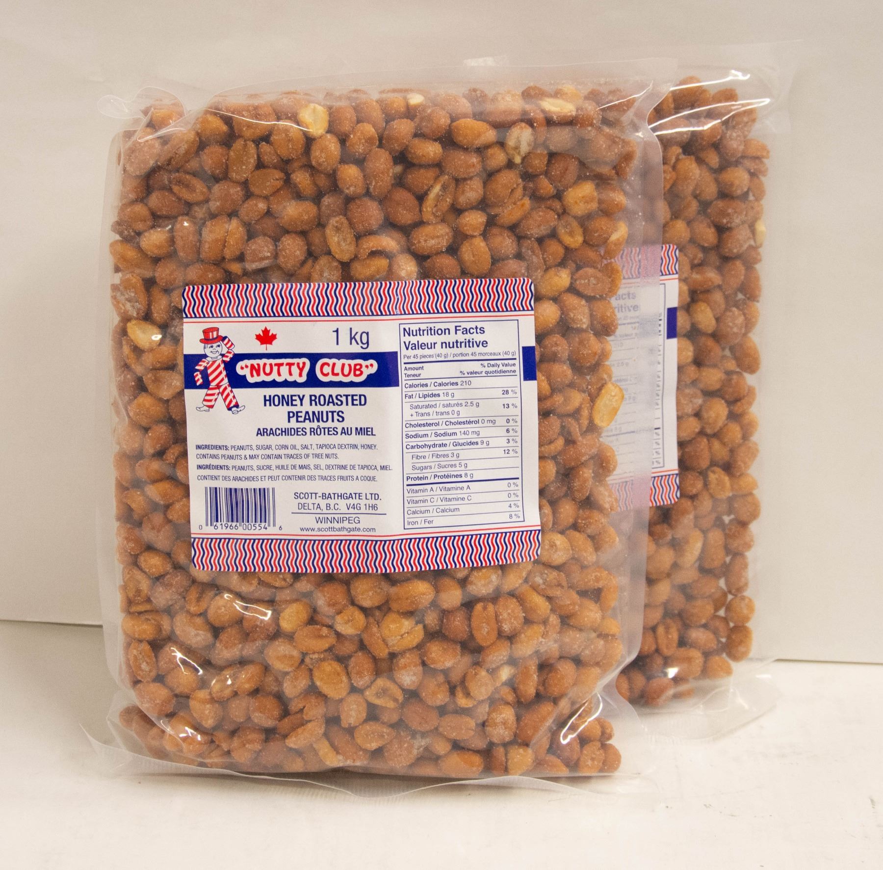 2 X 1 KG BAGS NUTTY CLUB HONEY ROASTED PEANUTS