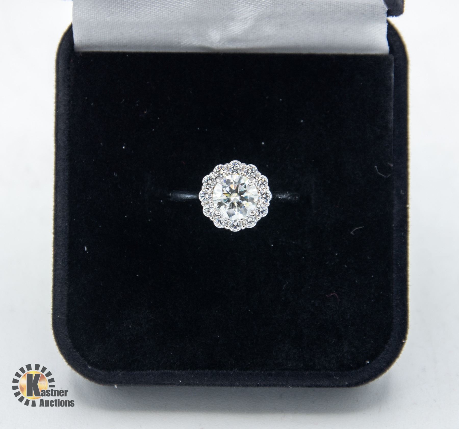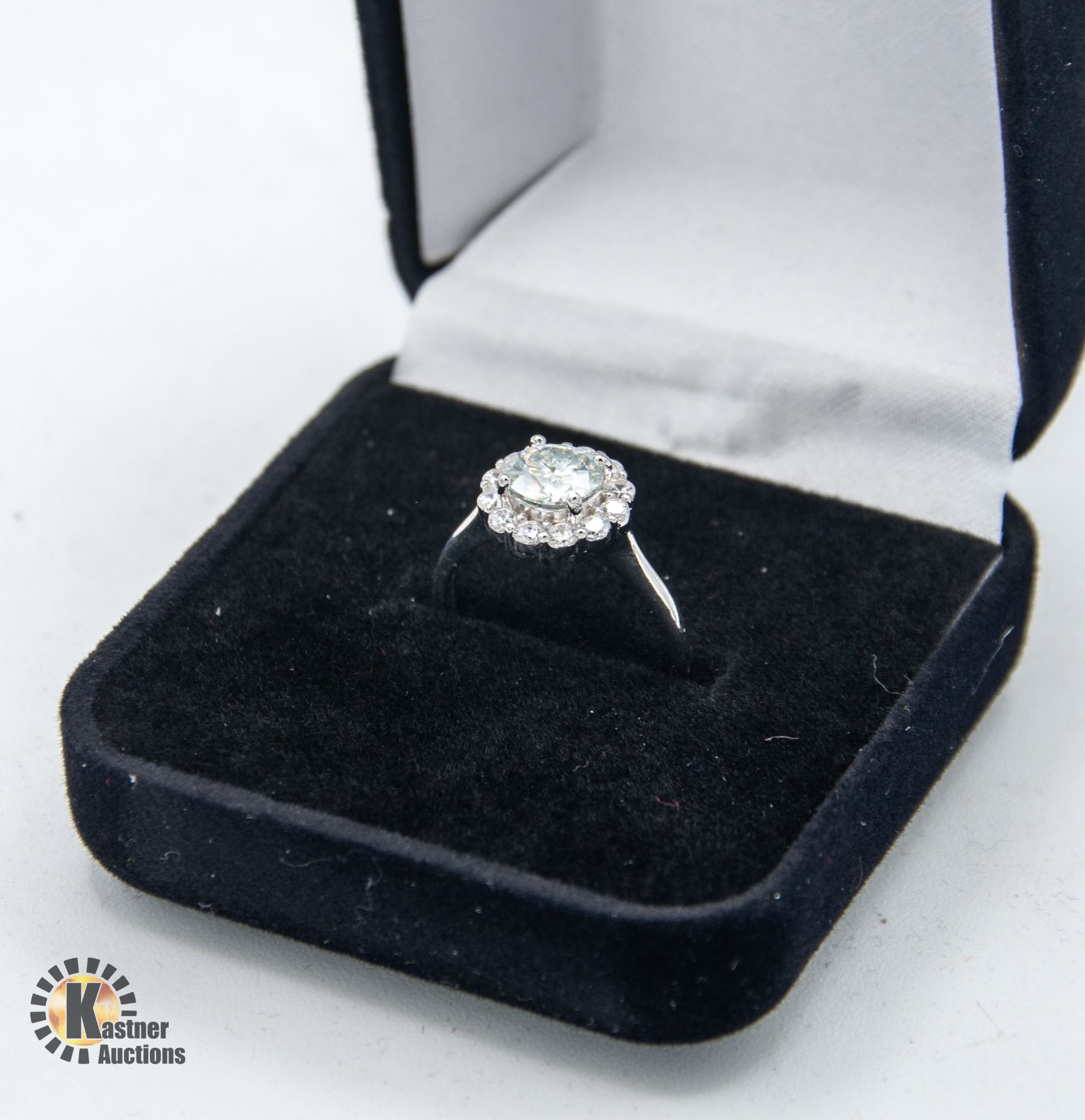 FULL CUT ROUND BRILLIANT WITH 12 ROUND BRILLIANT CUT CUBIC ZIRCONIA SET IN STERLING SILVER HALO RING SIZING ADJUSTABLE **ALL ITEMS MUST BE REMOVED BY 5PM SATURDAY, MARCH 30TH 2024. ALL REMAINING ITEMS WILL BE SUBJECT TO A $6.00 PER DAY STORAGE CHARGE. ANY ITEMS REMAINING AFTER MONDAY, APRIL 15TH, 2023 WILL BE CONSIDERED FORFEITED. NO REFUNDS WILL BE ISSUED FOR FORFEITED ITEMS. TO SCHEDULE A PICK UP APPOINTMENT CLICK HERE