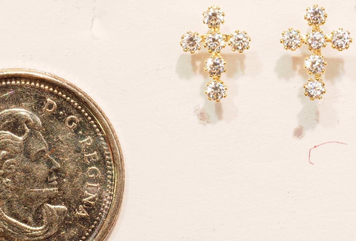 #20-14KT GOLD CUBIC ZIRCONIA CROSS EARRINGS
