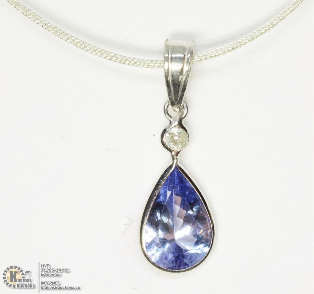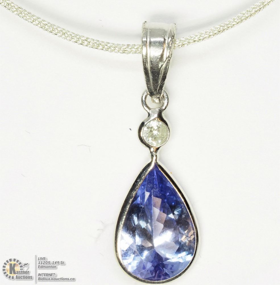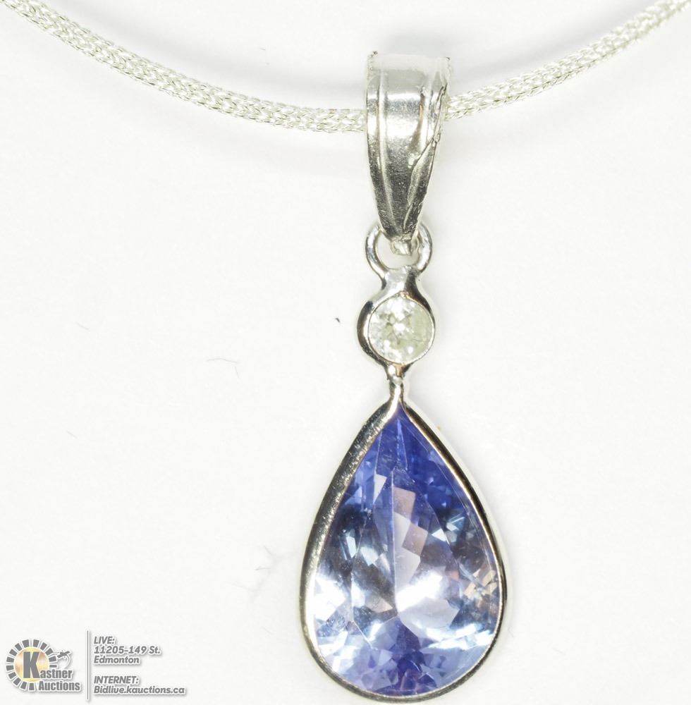 20 - GS91 - 14KT WHITE GOLD TANZANITE (2.00CT) & DIAMOND (0.06CT) PENDANT WITH CHAIN W/COA. SUGGESTED RETAIL VALUE $2,000.00. JEWELLERY