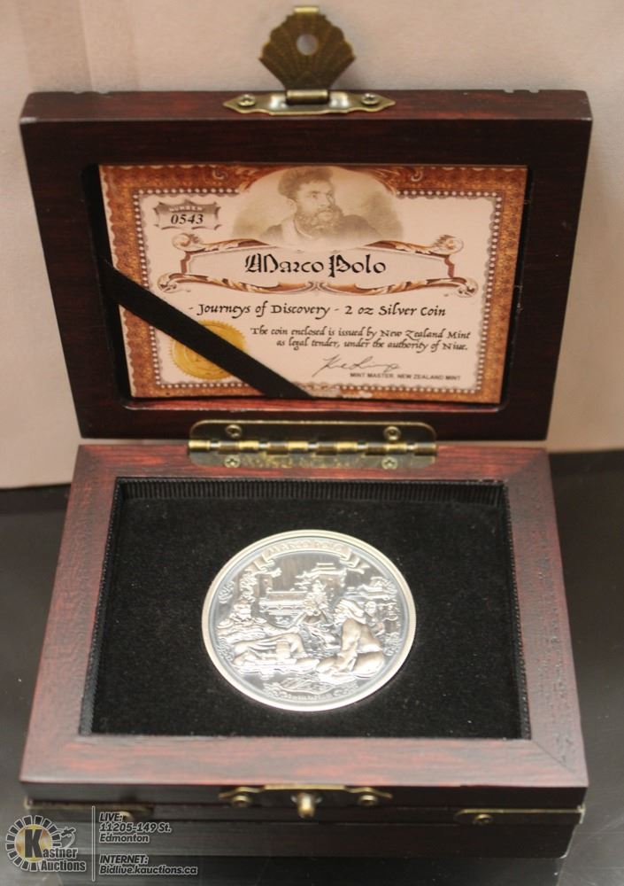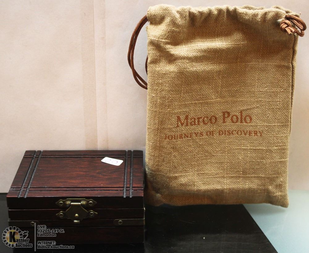 JOURNEYS OF DISCOVERY - MARCO POLO - COMES IN A TREASURE CHEST WITHIN A TREASURE BAG WITH THE COA, THIS RELIEF ENGRAVED COIN SHOWS THE MOMENT OF MARCO POLO MEETING THE GREAT KUBLIAKHAN. THIS SCENE IS SET IN A STRONGHOLD OF THE POWERFULMONGOL EMPIRE WHICH POLO MARVELLED SO MUCH AT DISCOVERY.
