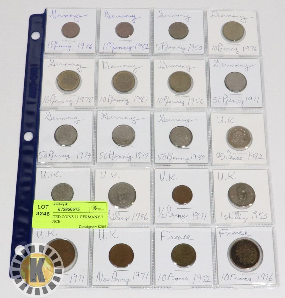20 ASSORTED COINS 11 GERMANY 7 UK 2 FRANCE