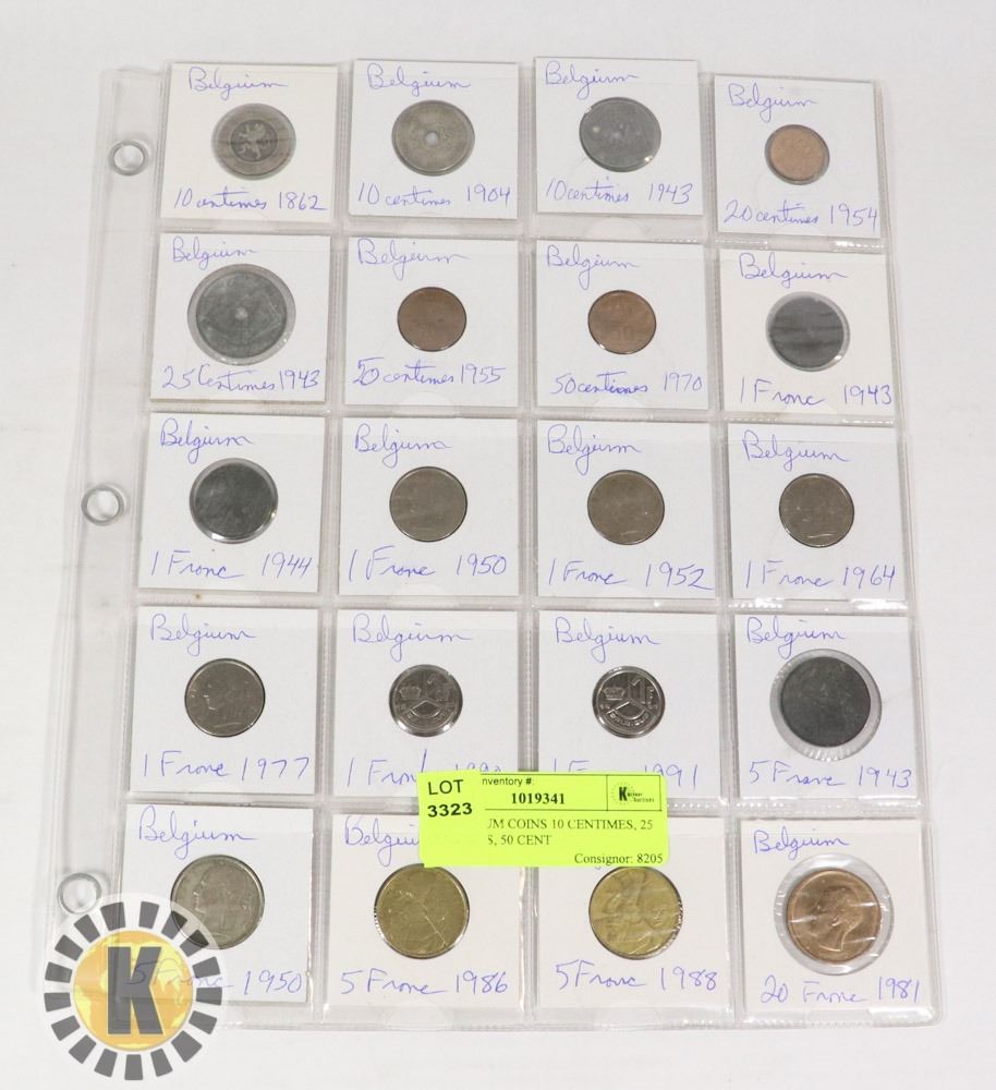 20 BELGIUM COINS 10 CENTIMES, 25 CENTIMES, 50 CENT