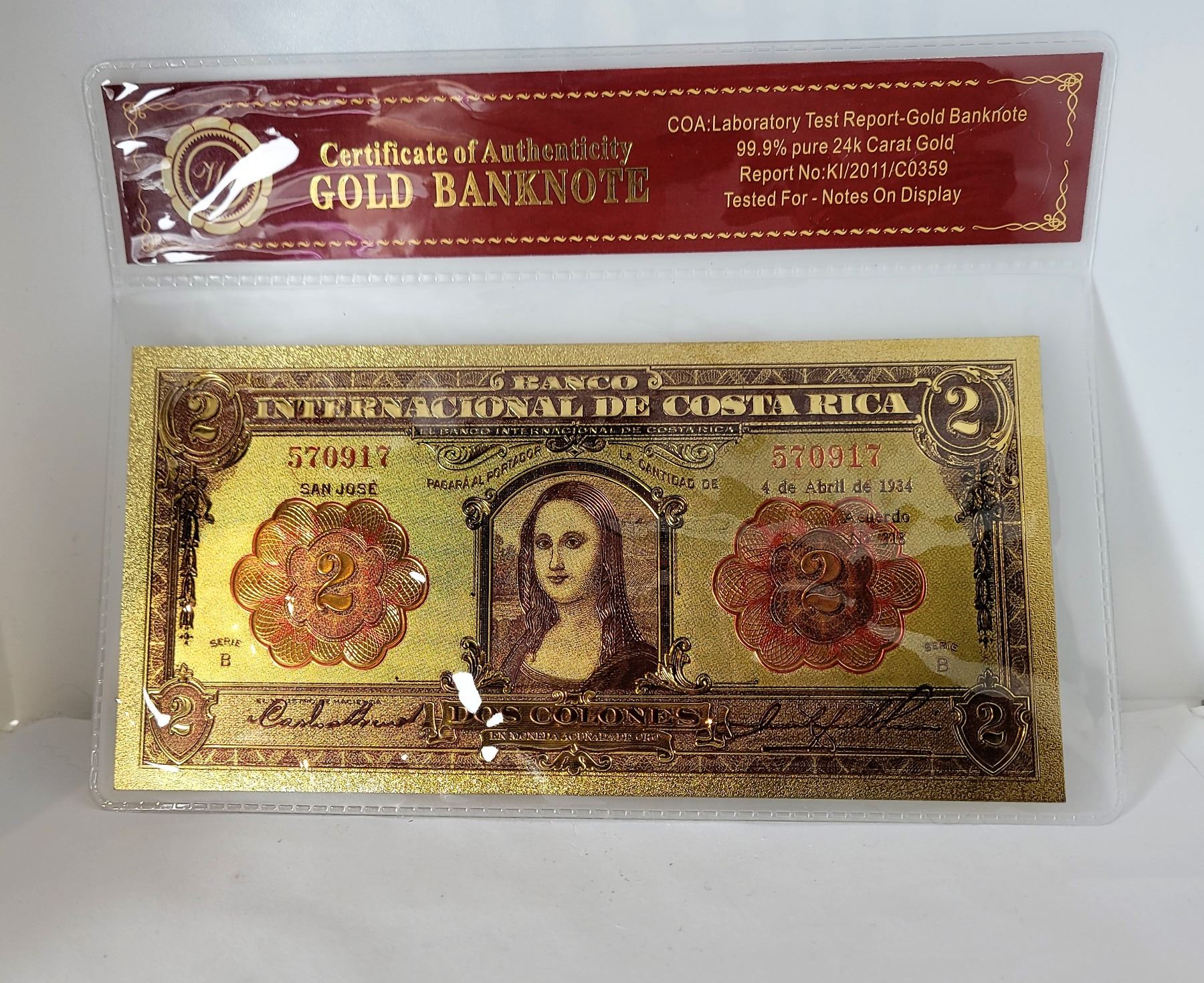 COLON BANK NOTE WITH COA, NOT LEGAL TENDER. COLLECTIBLES***ITEM LOCATED IN LETHBRIDGE AB