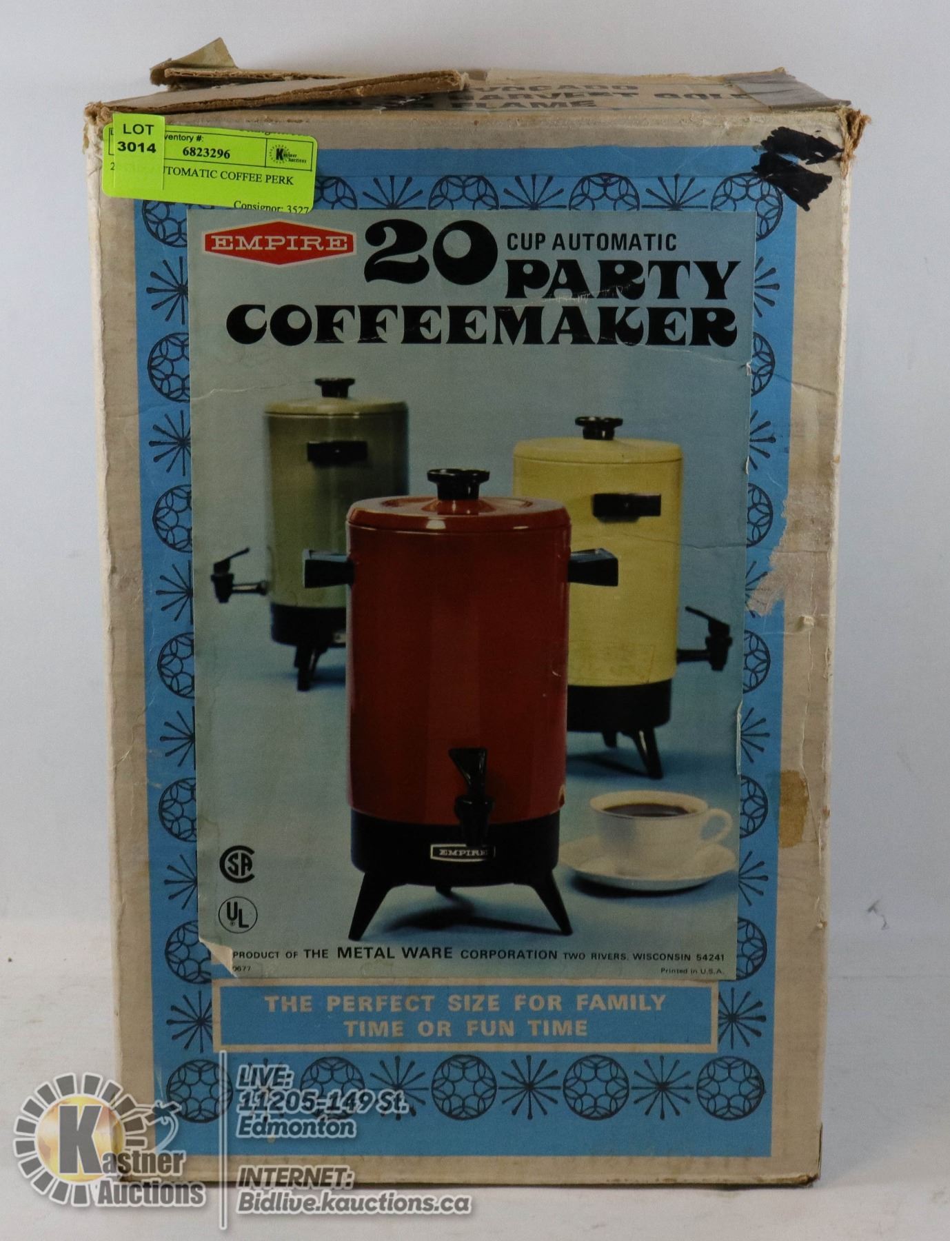 20 CUP AUTOMATIC COFFEE PERK TESTED WORKS GREAT, YELLOW IN COLOR