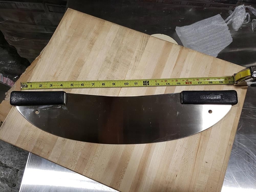 20" PIZZA ROCKER KNIFE W/ BLACK DOUBLE HANDLE - OMCAN 12818