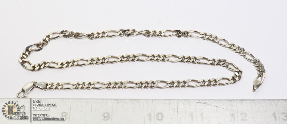 925 SILVER STAMPED FROM ITALY. 20" CHAIN NECKLACE. 29 GRAMS WEIGHT. LONG AND SHORT STYLE CHAIN WITH LOBSTER CLASP