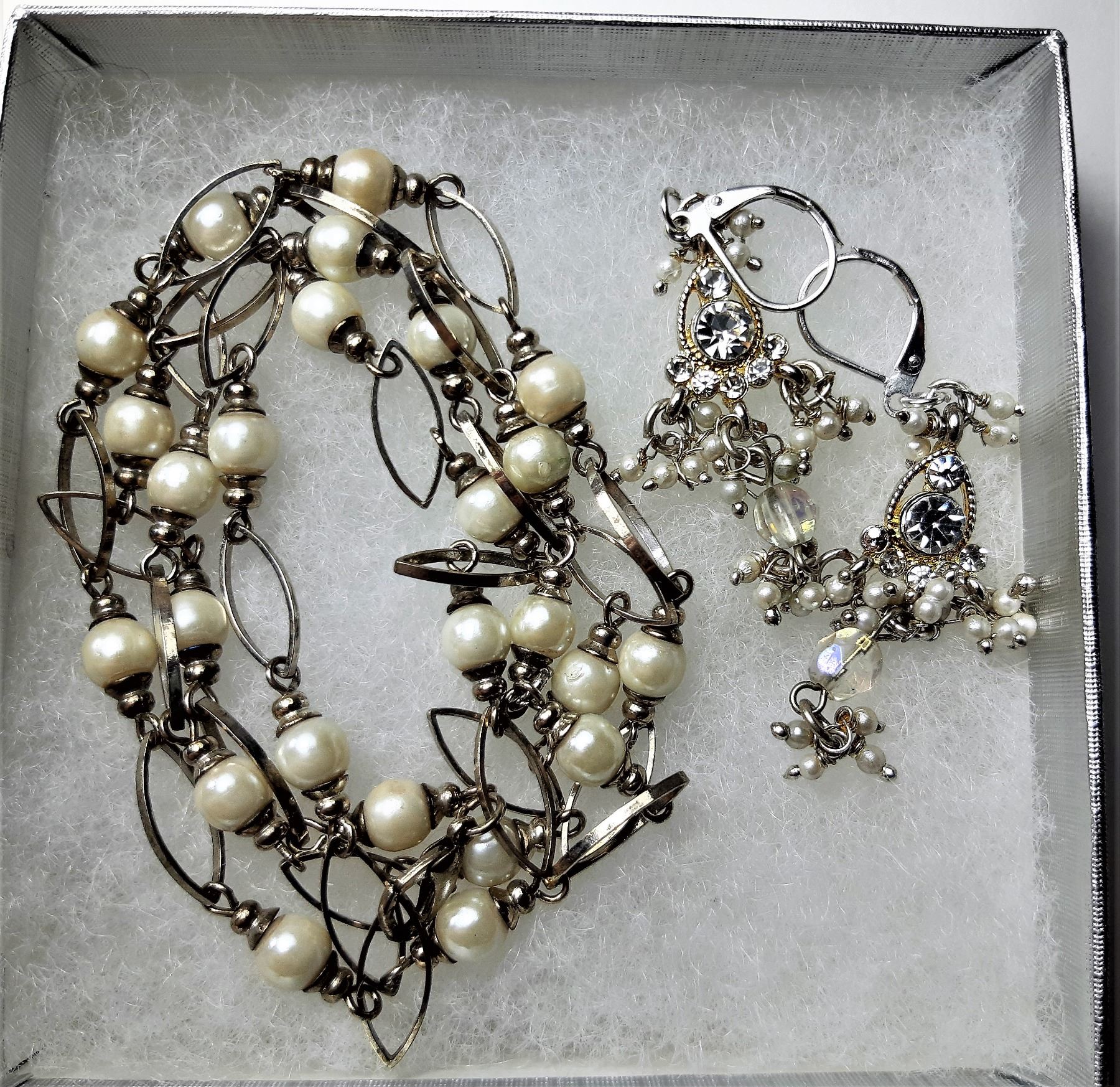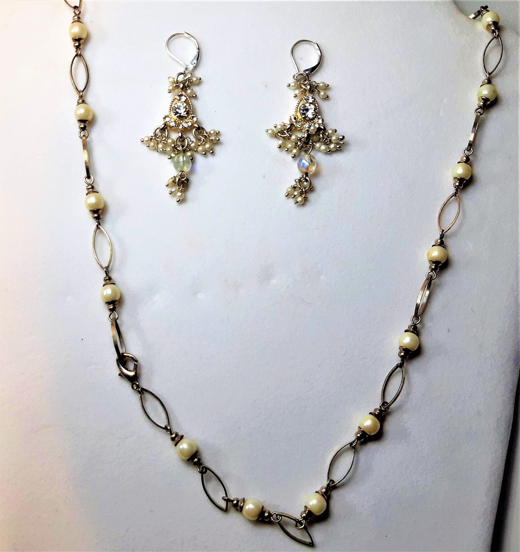28" NECKLACE & COORDINATING PEARL & CRYSTAL DROP EARRINGS. JEWELRY