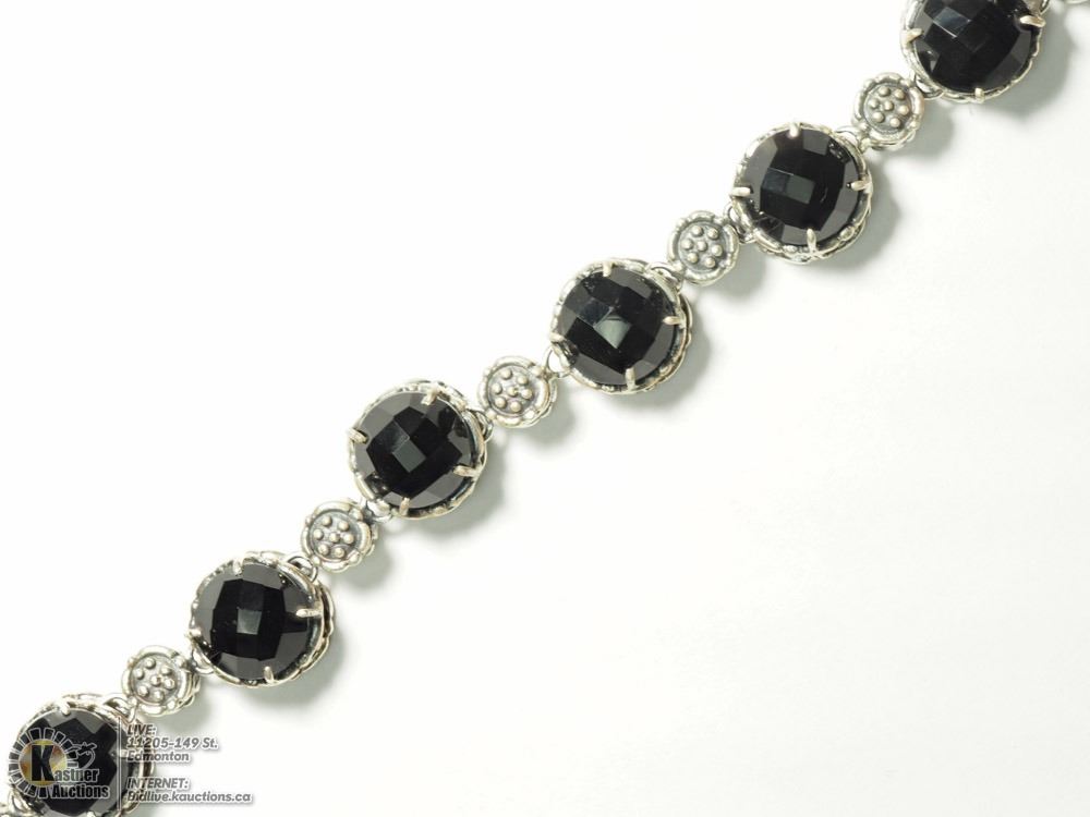 20-JP15 - STERLING SILVER BLACK ONYX ANTIQUE DESIGN BRACELET(28G). JEWELRY